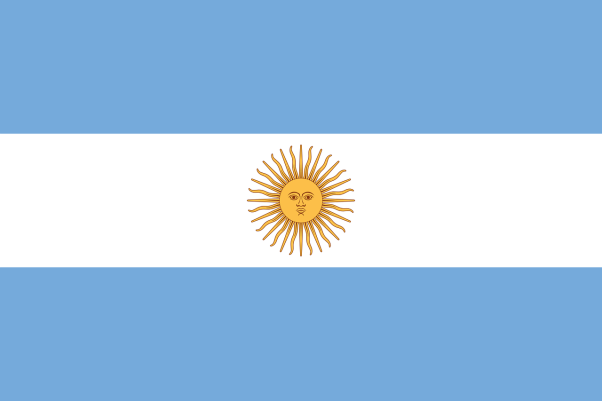 Adopté en 1812, le drapeau de l’Argentine est constitué de trois bandes : deux bandes bleues séparées par une bande blanche. Au centre de la bande blanche se trouve un soleil avec ses rayons ; le soleil étant pourvu d’une face humaine représentant le dieu su soleil Inca nommé Inti.